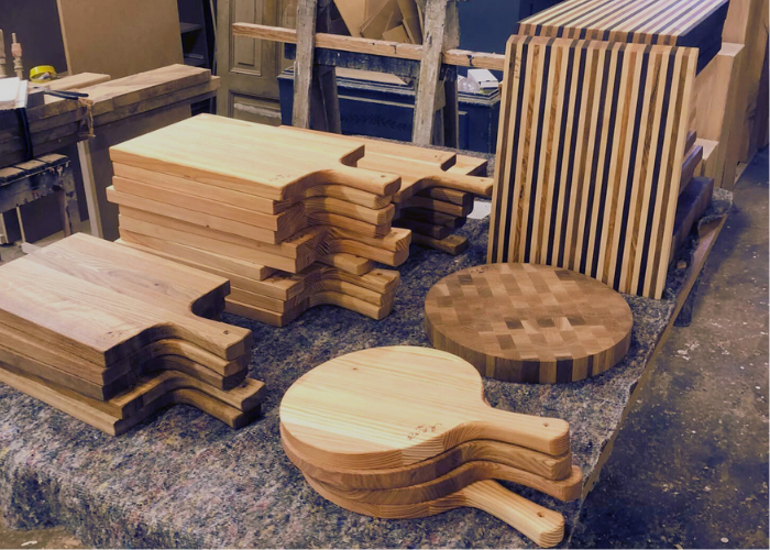 Hjärtat i verksamheten utgörs av finsnickeriet och här finns en komplett maskinpark jämte lager för olika träslag som ligger på tork i väntan på förädling. Hantverket utförs med känsla av de fem anställda och totalt ryms verksamheten på hela 585 kvadratmeter. Här tillverkas allt från vackra skärbräden till kompletta måttanpassade inredningar för husets alla rum. Under de senare åren har efterfrågan ökat för gedigna trappor, vävda räcken och större bord